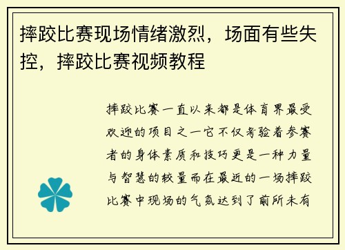 摔跤比赛一直以来都是体育界最受欢迎的项目之一,它不仅考验着参赛者的身体素质和技巧,更是一种力量与智慧的较量。而在最近的一场摔跤比赛中,现场的气氛达到了前所未有的高潮,观众们的情绪被彻底点燃,比赛场面一...