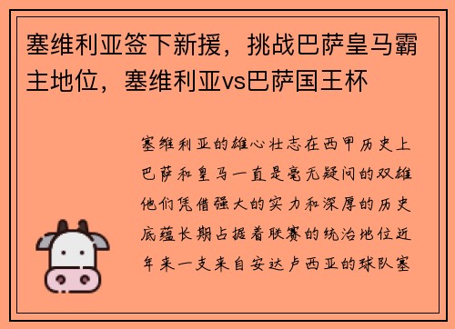 塞维利亚的雄心壮志 在西甲历史上,巴萨和皇马一直是毫无疑问的双雄,他们凭借强大的实力和深厚的历史底蕴,长期占据着联赛的统治地位。近年来,一支来自安达卢西亚的球队——塞维利亚,正在悄然崛起,逐渐打破了西...